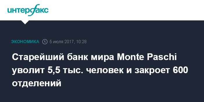 Старейший банк мира Monte Paschi уволит 5,5 тыс. человек и закроет 600 отделений
