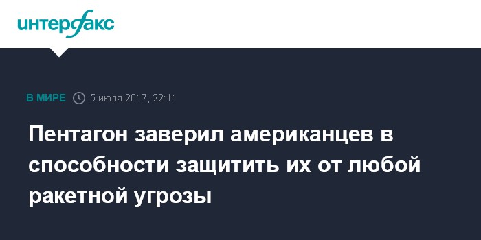 Москва. 5 июля. INTERFAX.RU - Американская армия способна справиться с любой ракетной угрозой, исходящей от КНДР, заявил в среду представитель Пентагона Джефф Дэвис.