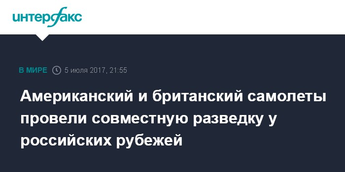Москва. 5 июля. INTERFAX.RU - Военные самолеты США и Великобритании в среду провели совместные разведывательные полеты вблизи Калининградской области, свидетельствуют данные западных сайтов, отслеживающих полеты военной авиации.