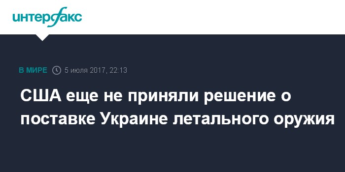 Москва. 5 июля. INTERFAX.RU - США пока не приняли решения о поставке Украине летального вооружения, заявил высокопоставленный представитель госдепартамента США.