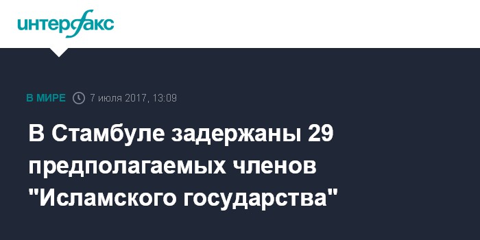 Москва. 7 июля. INTERFAX.RU - Полиция задержала в ходе антитеррористического рейда в Стамбуле 29 человек, подозреваемых в причастности к деятельности "Исламского государства" (запрещенная в России террористическая организация), сообщает в пятницу Анатолийское агентство новостей.