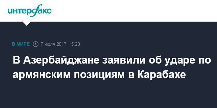 Москва. 7 июля. INTERFAX.RU - Вооруженные силы Азербайджана, "предотвращая провокацию армянской стороны", в пятницу нанесли ответный удар, заявляет минобороны Азербайджана.