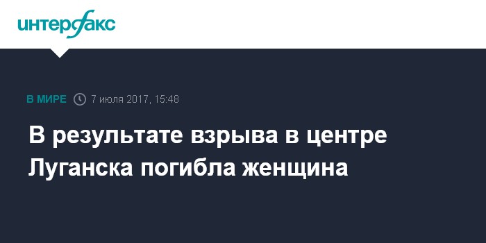 Москва. 7 июля. INTERFAX.RU - Пять человек пострадали и один погиб в результате взрыва в центре Луганска, сообщил "Интерфаксу" источник в правоохранительных органах самопровозглашенной Луганской народной республики.