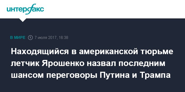 Находящийся в американской тюрьме летчик Ярошенко назвал последним шансом переговоры Путина и Трампа