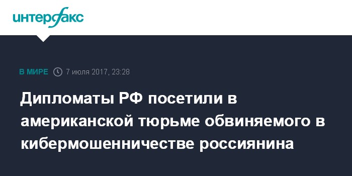 Дипломаты РФ посетили в американской тюрьме обвиняемого в кибермошенничестве россиянина
