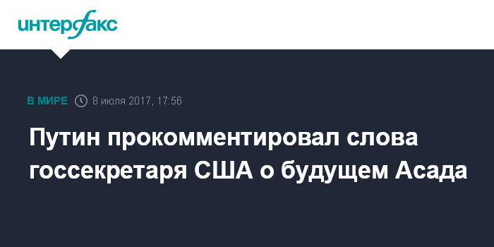 Путин прокомментировал слова госсекретаря США о будущем Асада