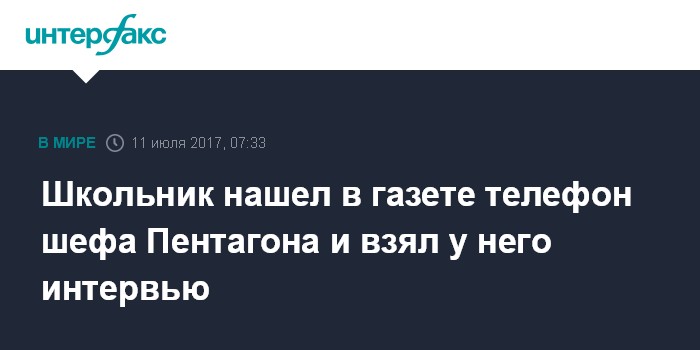 Школьник нашел в газете телефон шефа Пентагона и взял у него интервью