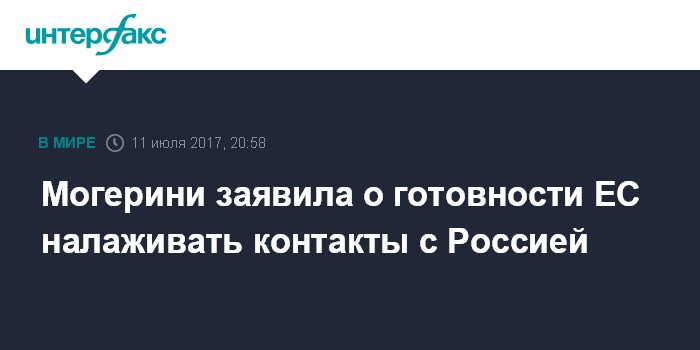 Москва. 11 июля. INTERFAX.RU - Европейский союз готов и намерен налаживать контакты с Россией, заявила во вторник верховный представитель ЕС по иностранным делам Федерика Могерини.