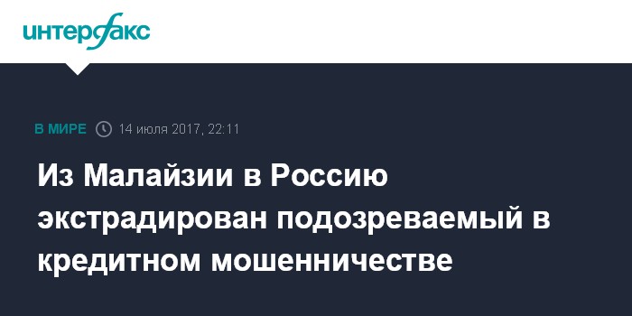 Из Малайзии в Россию экстрадирован подозреваемый в кредитном мошенничестве