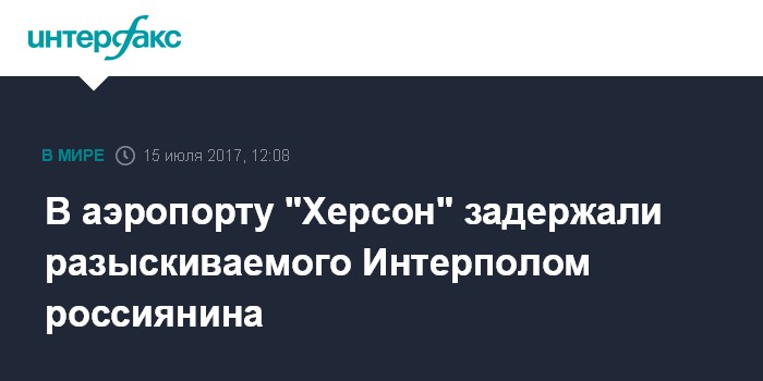 Москва. 15 июля. INTERFAX.RU - Украинские пограничники в аэропорту "Херсон" задержали гражданина Российской Федерации, который находился в международном розыске за убийство.