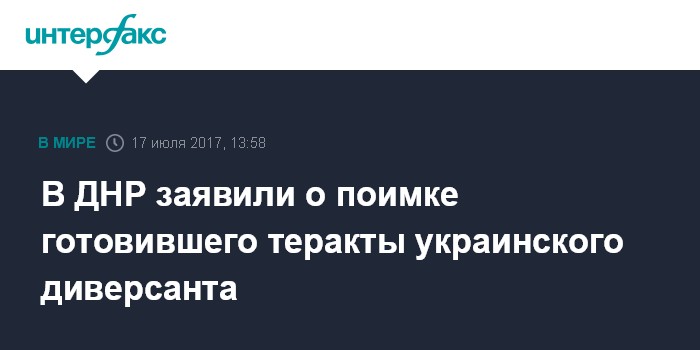 Москва. 17 июля. INTERFAX.RU - В самопровозглашенной Донецкой народной республике (ДНР) заявили о задержании украинского диверсанта, готовившего теракты в Докучаевске.