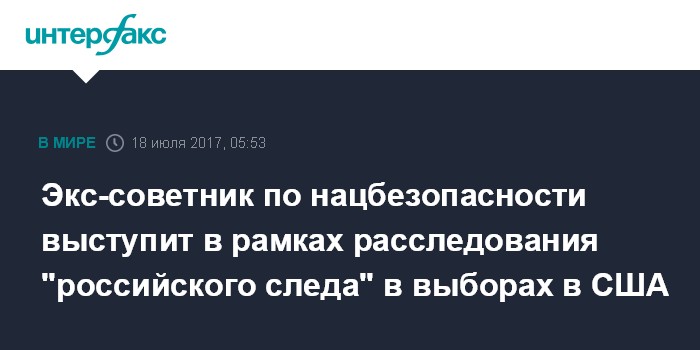 Экс-советник по нацбезопасности выступит в рамках расследования "российского следа" в выборах в США