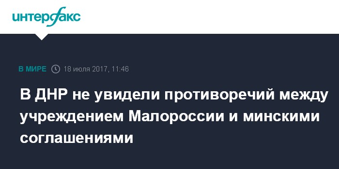 В ДНР не увидели противоречий между учреждением Малороссии и минскими соглашениями