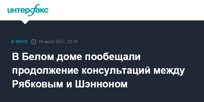 В Белом доме пообещали продолжение консультаций между Рябковым и Шэнноном