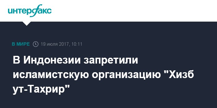 Москва. 19 июля. INTERFAX.RU - Правительство Индонезии, на основании нового указа президента запретило в стране деятельность радикальной мусульманской группировки "Хизб ут-Тахрир" (запрещена в РФ), сообщает в среду агентство Associated Press.