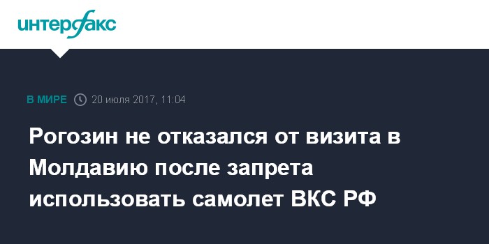 Москва. 20 июля. INTERFAX.RU - Вице-премьер РФ Дмитрий Рогозин намерен прилететь в Молдавию, несмотря на запрет молдавского правительства использовать для визита самолет российских Воздушно-Космических сил.