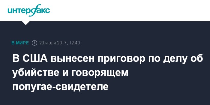 Москва. 20 июля. INTERFAX.RU - Жительницу американского штата Мичиган признали виновной в убийстве супруга, свидетелем преступления стал их попугай.