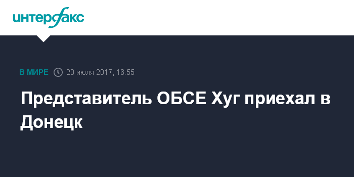 Москва. 20 июля. INTERFAX.RU - Первый заместитель главы Специальной мониторинговой миссии (СММ) ОБСЕ на Украине Александр Хуг прибыл в Донецк, сообщил журналистам представитель пресс-службы наблюдательной миссии.