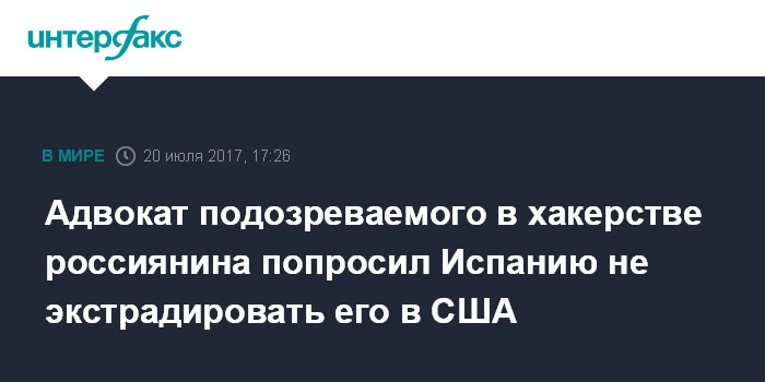 Адвокат подозреваемого в хакерстве россиянина попросил Испанию не экстрадировать его в США