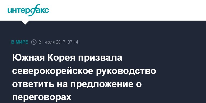 Как сообщалось, Южная Корея в минувший понедельник предложила КНДР 21 июля возобновить переговорный процесс по линии венных ведомств, а 1 августа - по линии Красного креста.