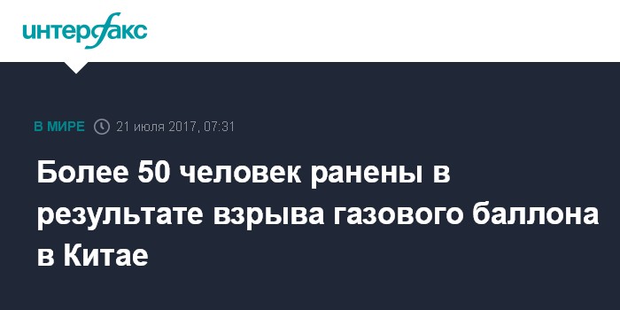 Более 50 человек ранены в результате взрыва газового баллона в Китае