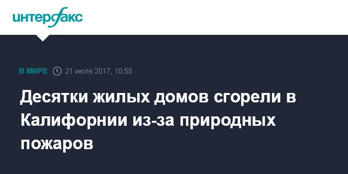 Москва. 21 июля. INTERFAX.RU - Сильные лесные пожары на востоке американского штата Калифорния уничтожили в ночь на пятницу по меньшей мере 45 жилых домов, сообщают местные СМИ.