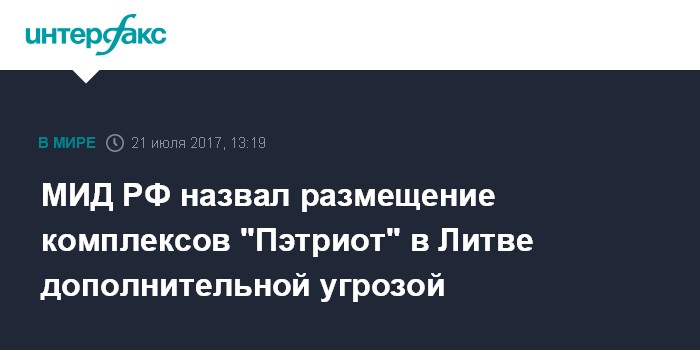 МИД РФ назвал размещение комплексов "Пэтриот" в Литве дополнительной угрозой