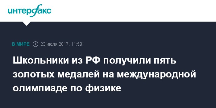 Москва. 23 июля. INTERFAX.RU - Российские школьники завоевали пять золотых медалей на международной олимпиаде по физике, сообщили в пресс-службе Минобрнауки РФ.