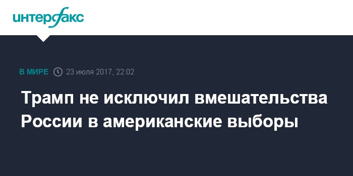 Москва. 23 июля. INTERFAX.RU - Президент США Дональд Трамп не уверен, что Россия пыталась вмешаться в ход американских выборов 2016 года, хотя и не исключает такой возможности, заявил в воскресенье новый директор по коммуникациям Белого дома Энтони Скарамуччи.