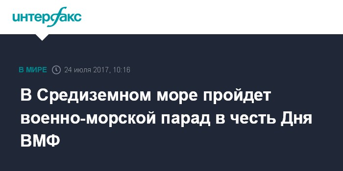 "В соответствии с решением министра обороны РФ 30 июля впервые пройдет военно-морской парад в акватории Средиземного моря, в районе сирийского города Тартус. В нем примут участие корабли оперативного соединения ВМФ России", - заявил Королев в интервью газете "Московский комсомолец".