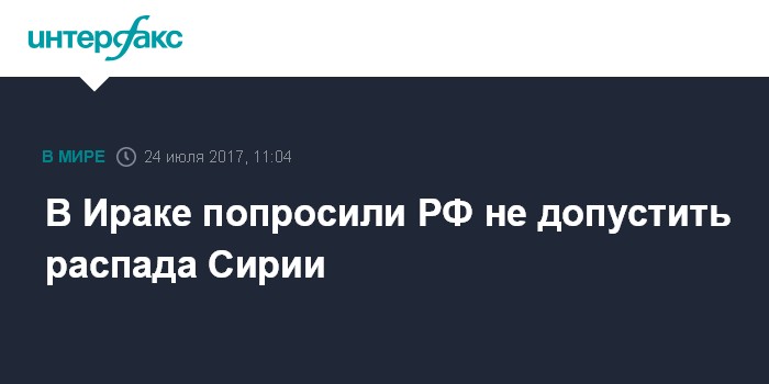 В Ираке попросили РФ не допустить распада Сирии