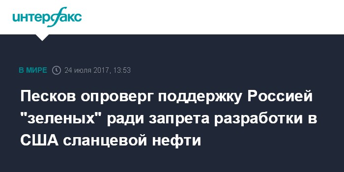 Песков опроверг поддержку Россией "зеленых" ради запрета разработки в США сланцевой нефти