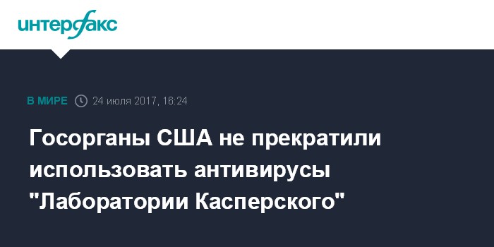 Москва. 24 июля. INTERFAX.RU - Госорганы США продолжают использовать антивирусное программное обеспечение российской компании "Лаборатория Касперского" - несмотря на ее исключение из списка поставщиков, продукция которых одобрена для использования правительственными агентствами. Об этом сообщает газета The Washington Post.