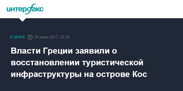 Москва. 24 июля. INTERFAX.RU - Министерство туризма Греции в понедельник заявило, что деятельность в сфере туризма на острове Кос, пострадавшем от землетрясения, стабилизировалась.