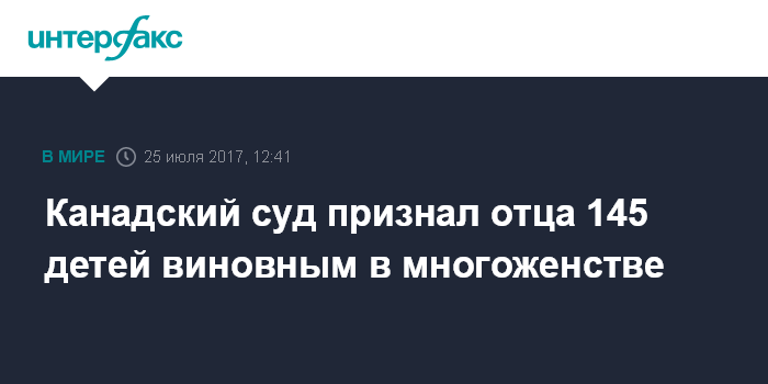 Канадский суд признал отца 145 детей виновным в многоженстве