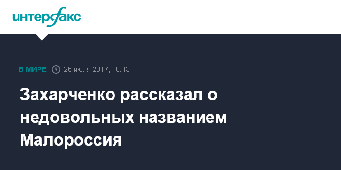 Захарченко рассказал о недовольных названием Малороссия