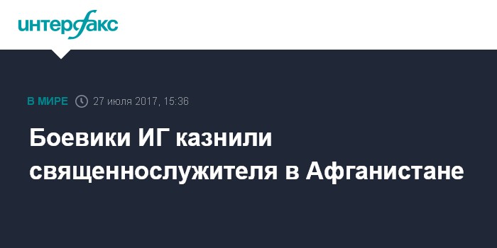 Москва. 27 июля. INTERFAX.RU - На северо-западе Афганистана боевики террористической группировки "Исламское государство" казнили священнослужителя. Об этом сообщили власти афганской провинции Сари-Пуль.
