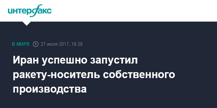 Москва. 27 июля. INTERFAX.RU - Иран произвел успешный запуск ракеты-носителя собственного производства "Симорг", предназначенную для вывода спутников в космос, сообщает агентство Associated Press.