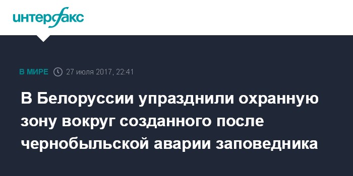 Москва. 27 июля. INTERFAX.RU - В Белоруссии упраздняют охранную зону вокруг Полесского государственного радиационно-экологического заповедника, сообщает пресс-служба президента Белоруссии в четверг.