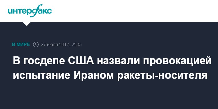 Москва. 27 июля. INTERFAX.RU - Провокационным актом считают в Вашингтоне запуск ракеты-носителя, осуществленный в Иране в четверг, сообщила на брифинге представитель госдепа США Хизер Нойерт.