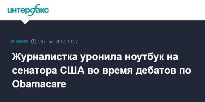 Москва. 28 июля. INTERFAX.RU - Журналистка, освещающая деятельность конгресса США, уронила ноутбук на сенатора-республиканца Тима Скотта во время дебатов по вопросу об отмене реформы здравоохранения Obamacare, сообщает в пятницу издание The Hill.