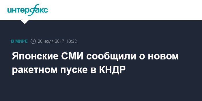 Москва. 28 июля. INTERFAX.RU - КНДР, вероятно, в пятницу осуществила очередной ракетный пуск, сообщают японские СМИ.