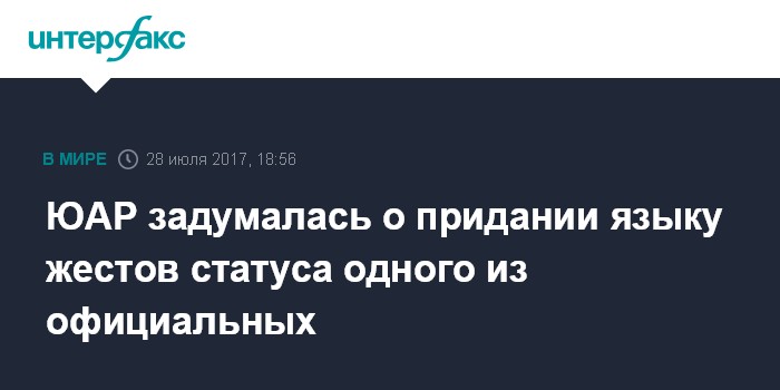Москва. 28 июля. INTERFAX.RU - Власти Южно-Африканской Республики могут в скором времени сделать язык жестов двенадцатым официальным языком в стране, сообщает в пятницу "Би-би-си".