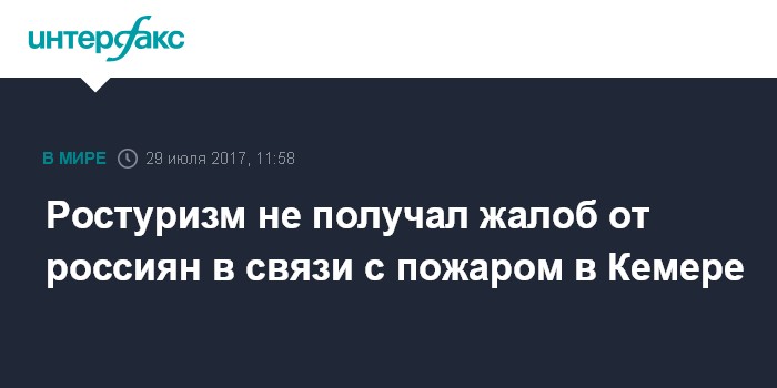 Ростуризм не получал жалоб от россиян в связи с пожаром в Кемере
