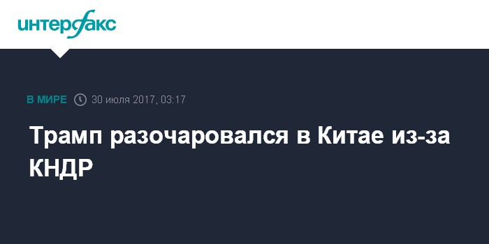 Москва. 30 июля. INTERFAX.RU - Президент США Дональд Трамп заявил, что разочарован в Китае, который, по словам американского лидера, ничего не сделал для решения проблемы КНДР.