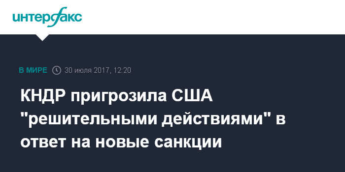 Москва. 30 июля. INTERFAX.RU - Пхеньян предпримет решительные действия, если США примут решение усилить санкции против Северной Кореи, то, передает в воскресенье агентство "Ренхап".