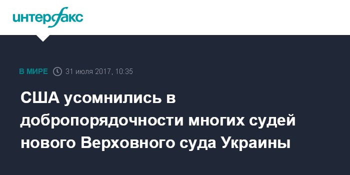 Москва. 31 июля. INTERFAX.RU - Кандидаты на должности судей нового Верховного суда Украины, отобранные в результате конкурса, должны быть рассмотрены Высшим советом правосудия страны, считают в посольстве США.