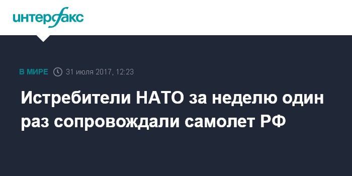 Москва. 31 июля. INTERFAX.RU - На минувшей неделе истребители НАТО, несущие дежурство в миссии Балтийского воздушного патрулирования, один раз поднимались в небо для опознания и сопровождения российского военного самолета. Он находился в международном пространстве над Балтийским морем.