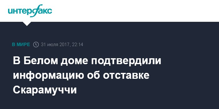 Москва. 31 июля. INTERFAX.RU - Белый дом в понедельник подтвердил сообщения американских СМИ об отставке с поста директора по коммуникациям финансиста Энтони Скарамуччи.