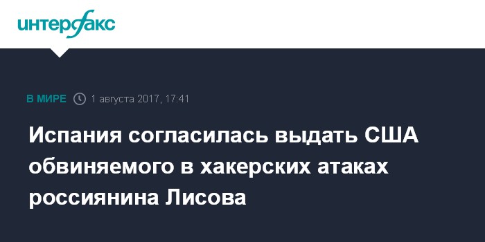 Испания согласилась выдать США обвиняемого в хакерских атаках россиянина Лисова